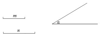 ①在射线BF上截取线段BC=m,②作∠EBF=∠α;③在射线BE上截取线段BA=n;